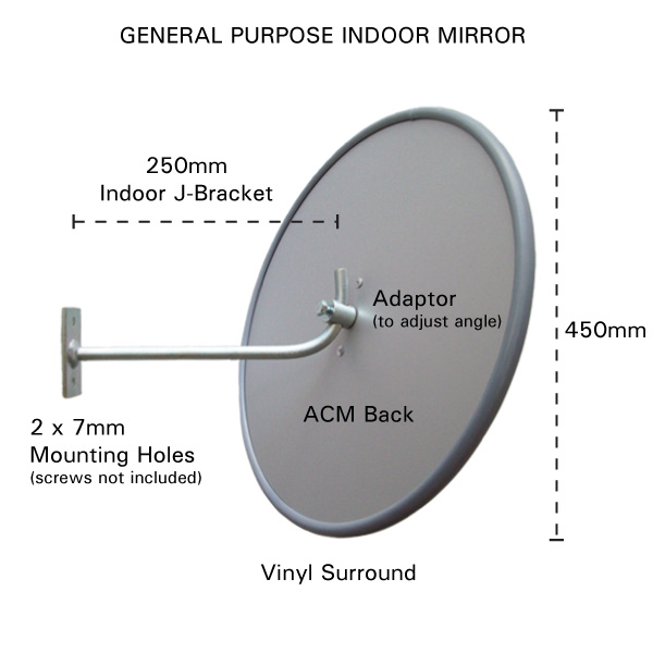 The 450mm General Purpose convex mirror for indoor use, is designed to improve visibility for retail security and light industrial safety. This versatile convex mirror can be positioned wherever a blind spot exists to improve observation and safety for hard to see areas. Ideal for shop surveillance, reception areas, childcare centres, hospitals and garages.