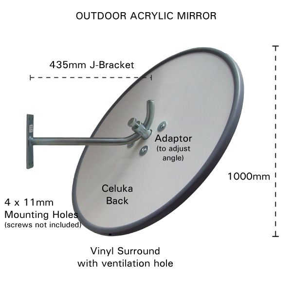 The 1000mm Outdoor Acrylic Convex Mirror is weather proof and designed for general outdoor areas which are not exposed to harsh environmental